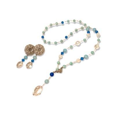 高嶋化粧品ご愛用者様限定 水晶、アマゾナイト、ブルーアゲート、ホワイトオパールのネックレス 水晶、ブルーアゲートのイヤリング 0円ではありません 詳しくはメールでお問い合わせください