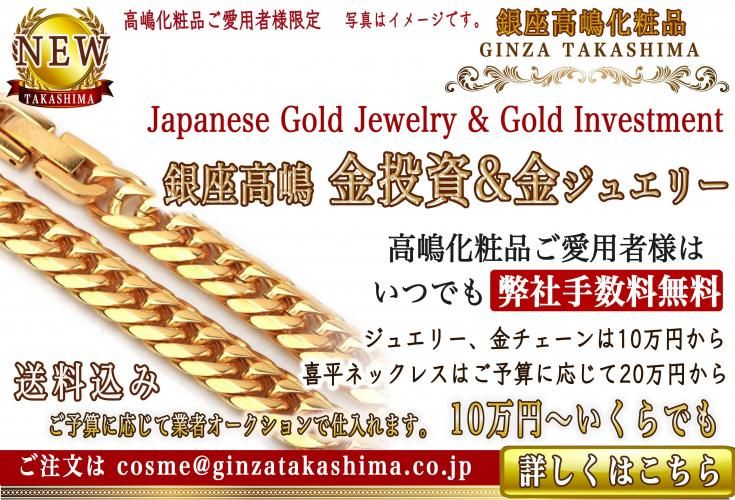 銀座高嶋化粧品 銀座のママの金専門店 銀座高嶋金ジュエリー金投資 喜平ネックレスは10万円からリクエストOK 送料込み